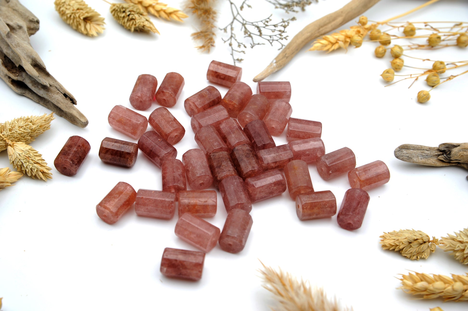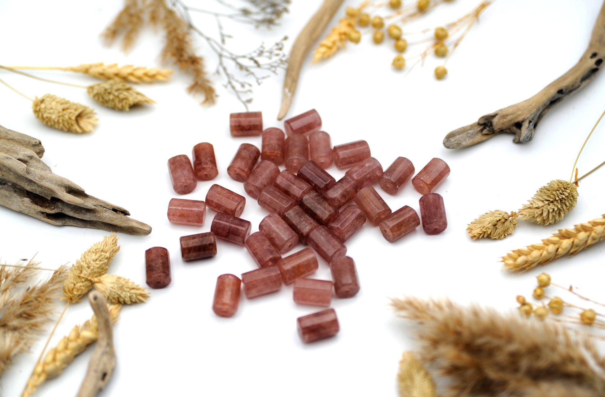 Lieferumfang: Zwei Erdbeerquarz‑Perlen in Tube‑Form. Preis pro Set.