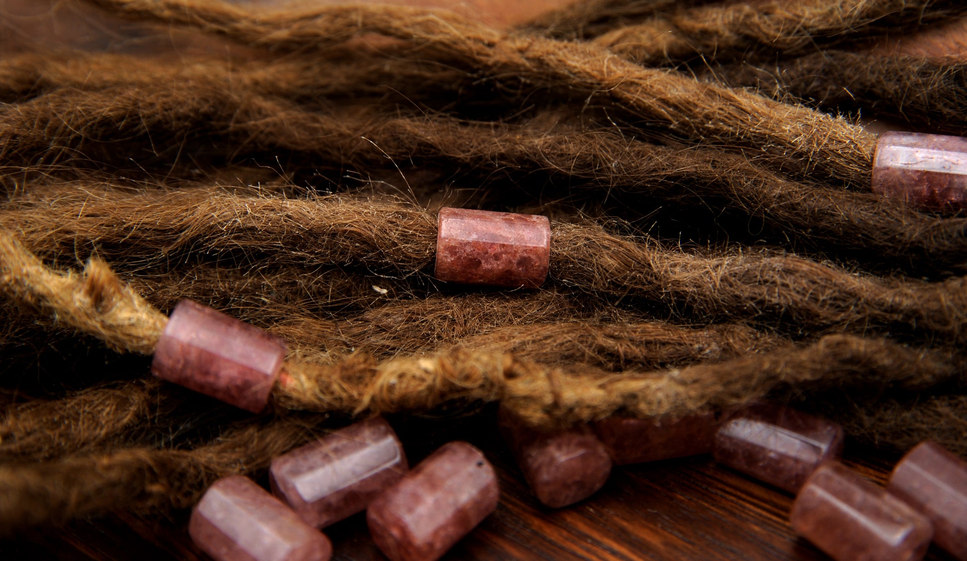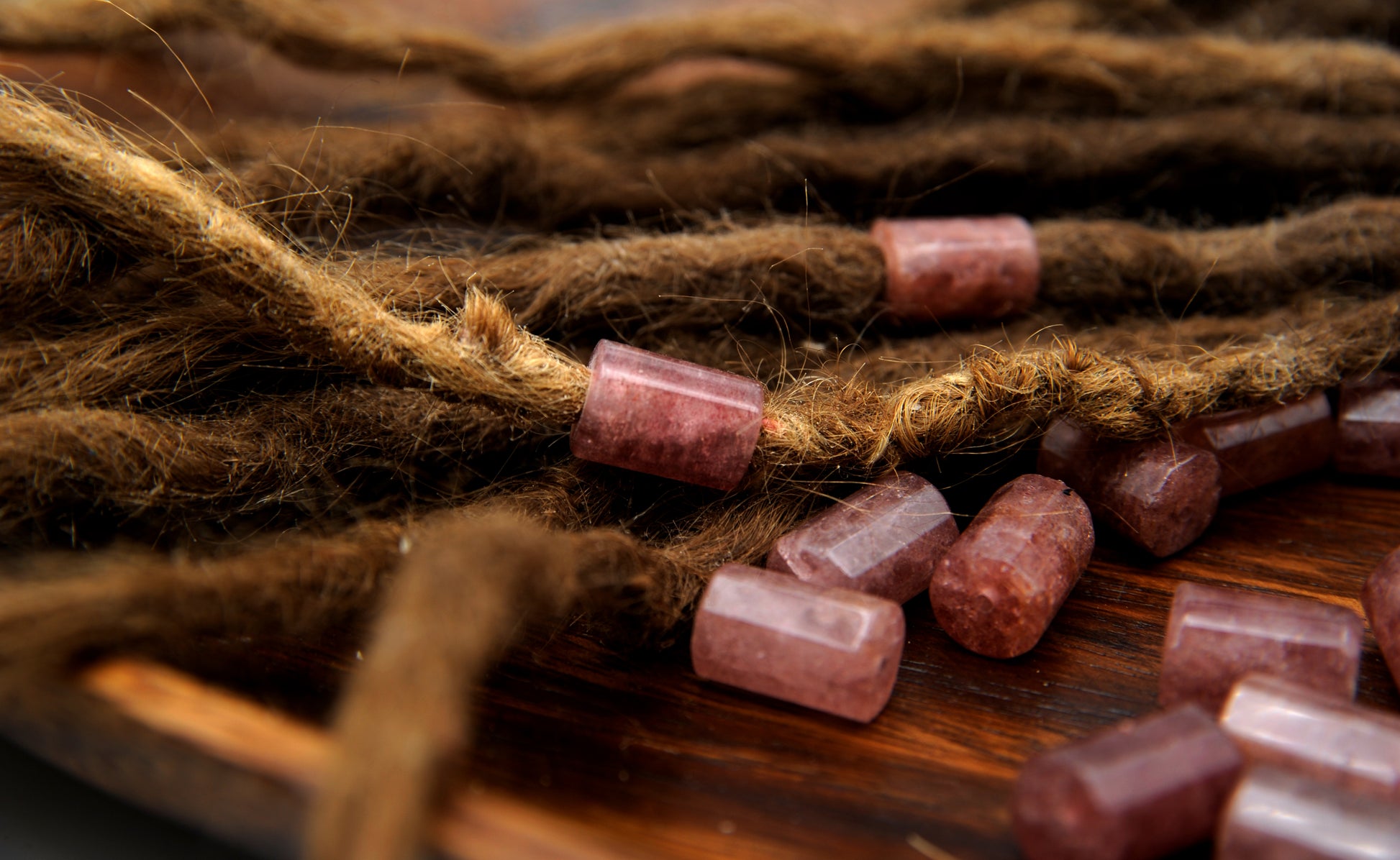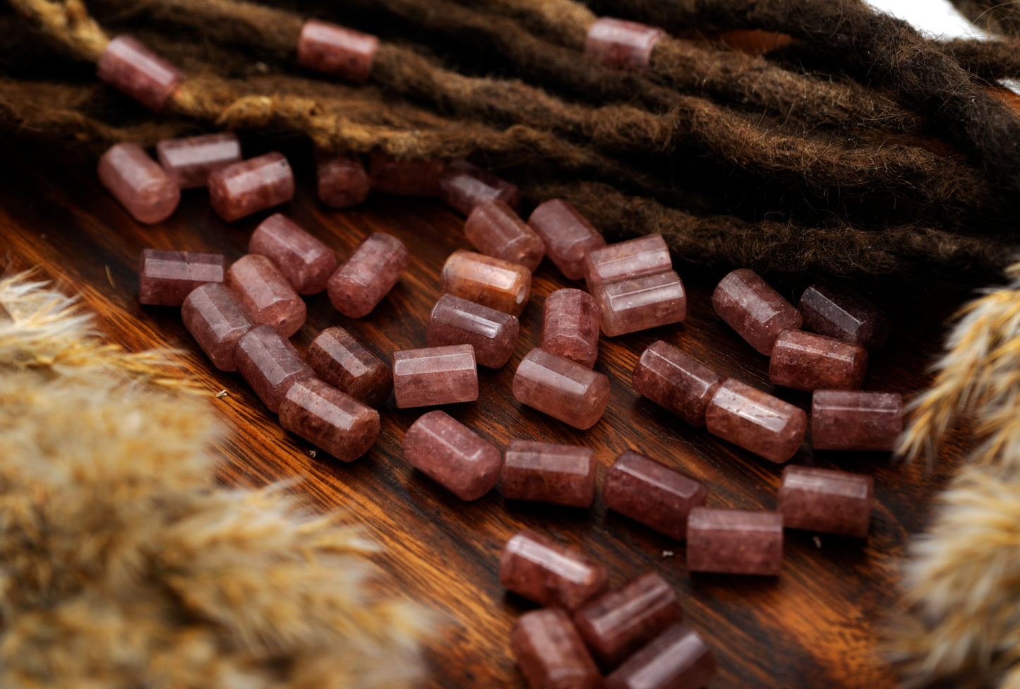 Erdbeerquarz Dreadlockperlen – Tube (2er-Set)