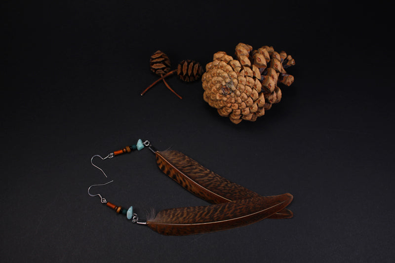 Diese handgefertigten Federohrringe bestehen aus echten Federn des Goldfasans. Die Federn schimmern in edlen Braun- und Goldnuancen 🌾 und bringen ein Stück Natur direkt in deinen Look.