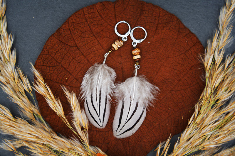 Federohrringe aus Silberfasan-Rupffedern – Klein, Leicht & Boho-Style