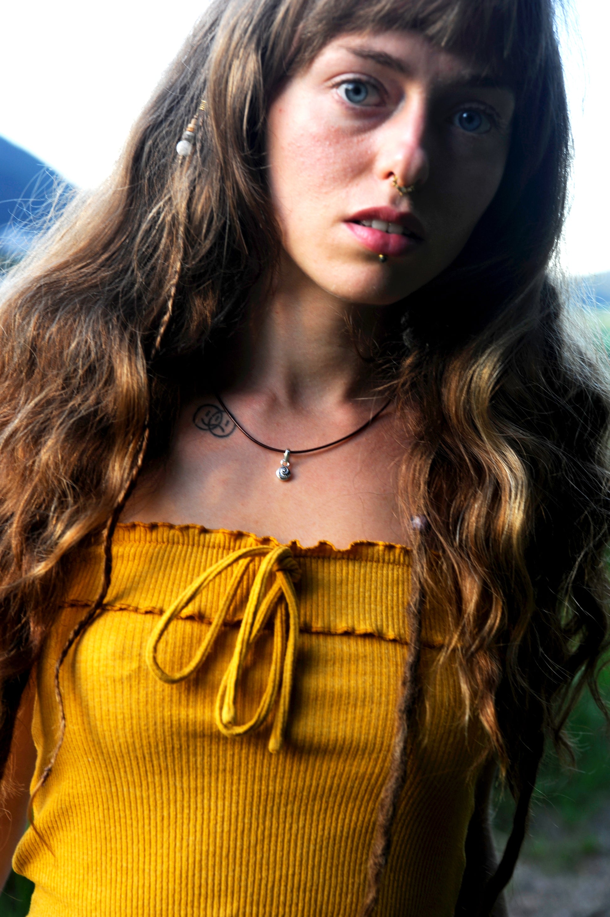 Der Anhänger ist fein gearbeitet und leicht oxidiert, um die Spiralstruktur hervorzuheben. Die Größe des Lederbandes ist individuell wählbar, sodass die Kette perfekt sitzt – ob als kurze Choker-Variante oder länger getragen.