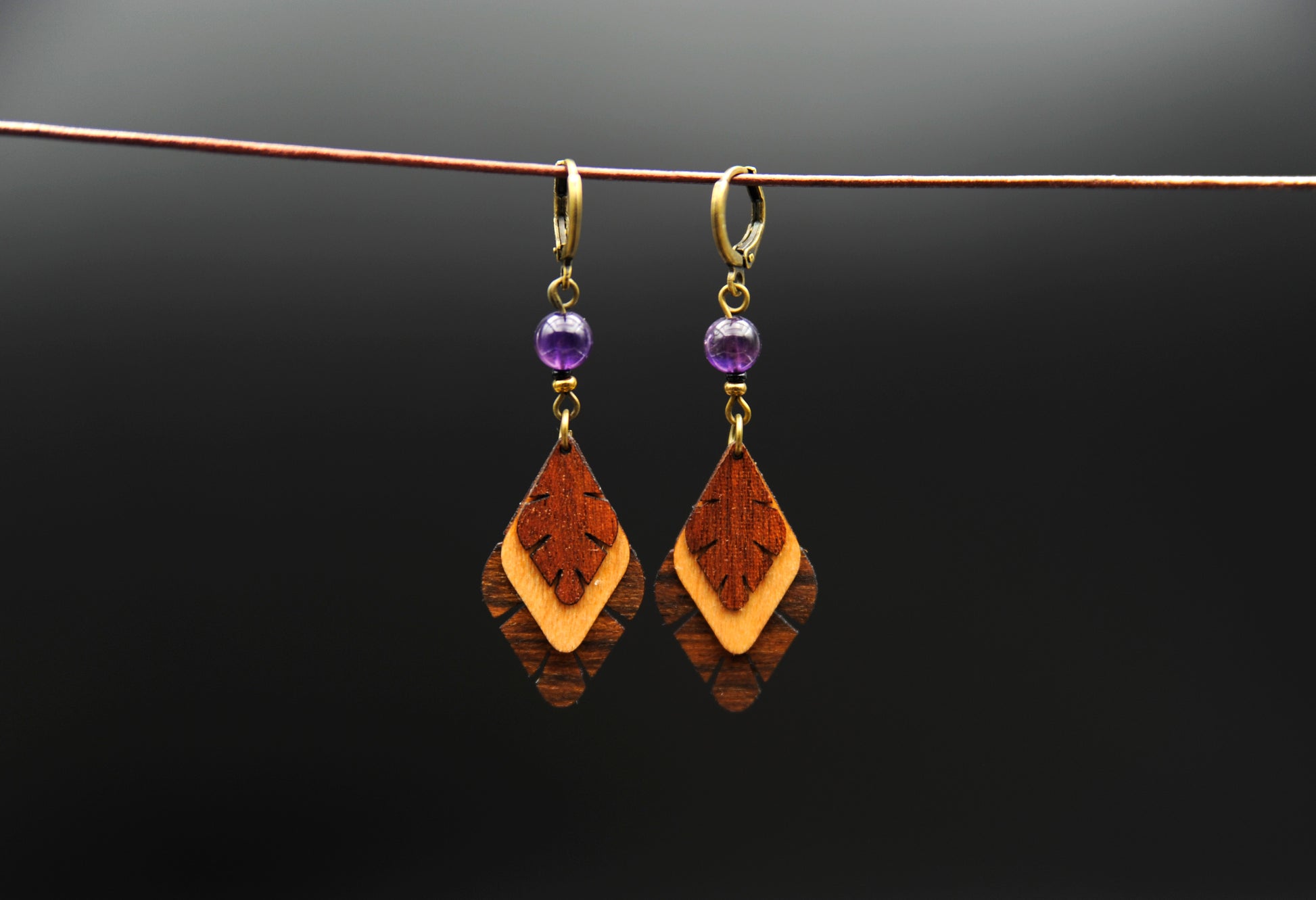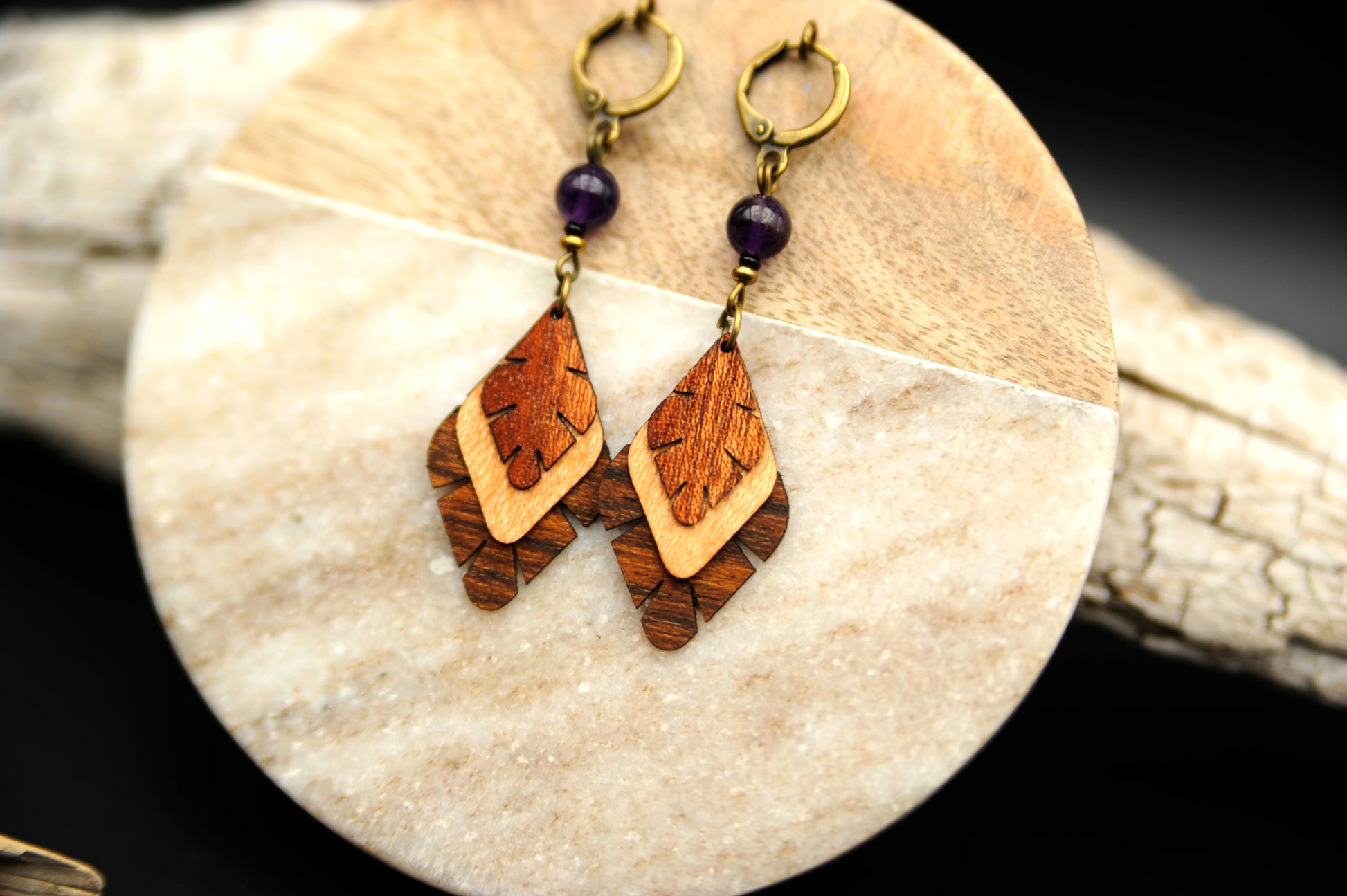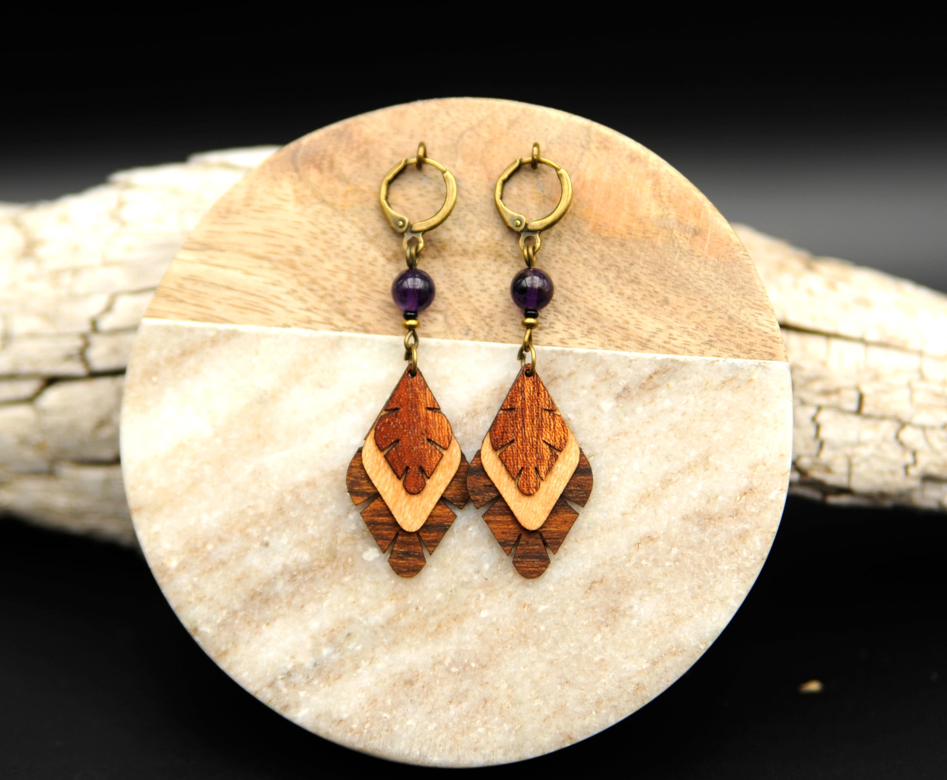 Ohrringe »Ametria« – Holz & Amethyst
