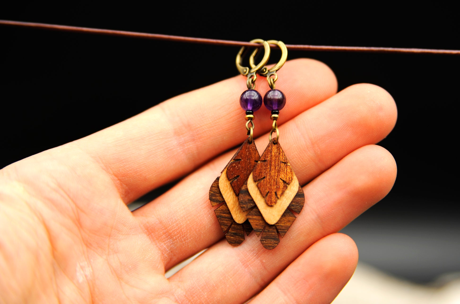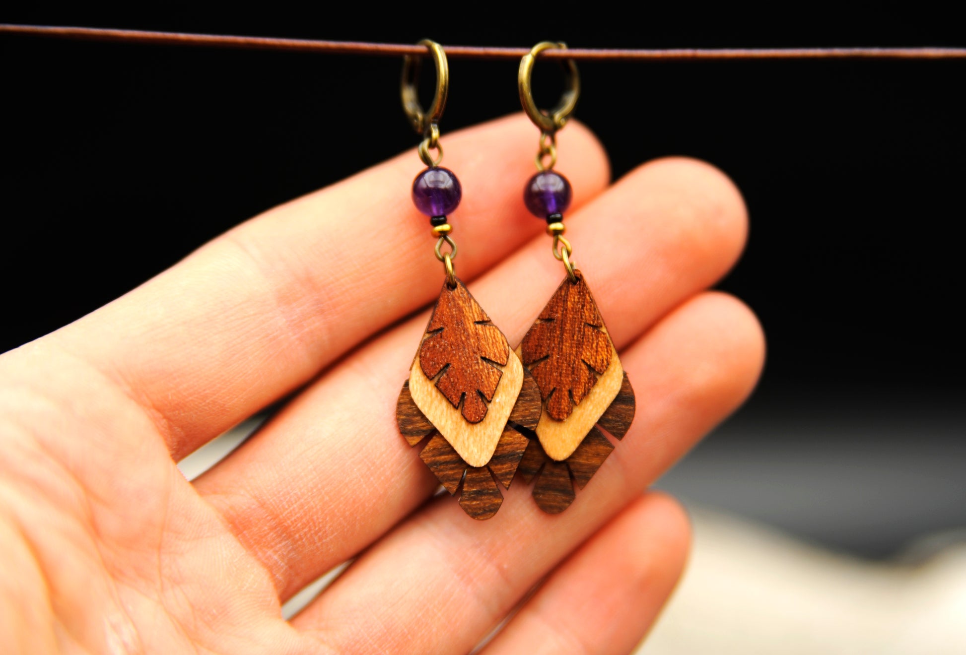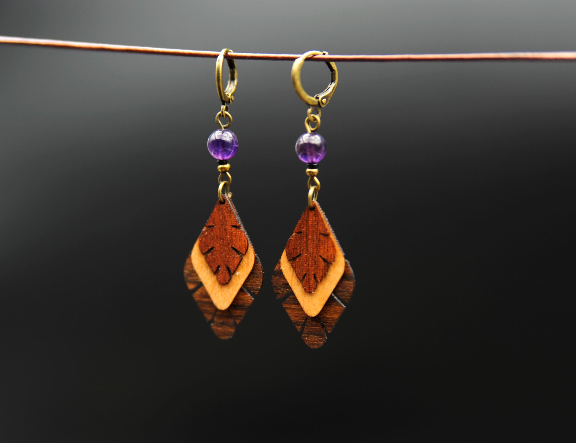 Ohrringe »Ametria« – Holz & Amethyst
