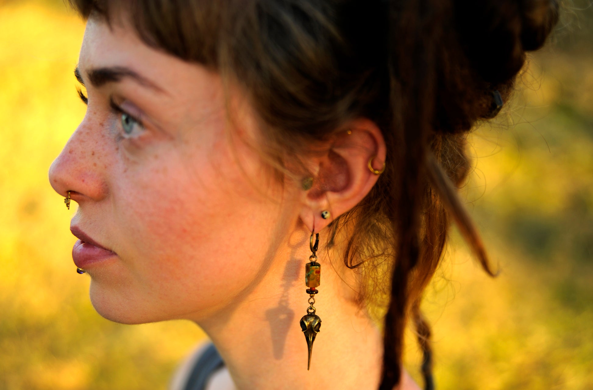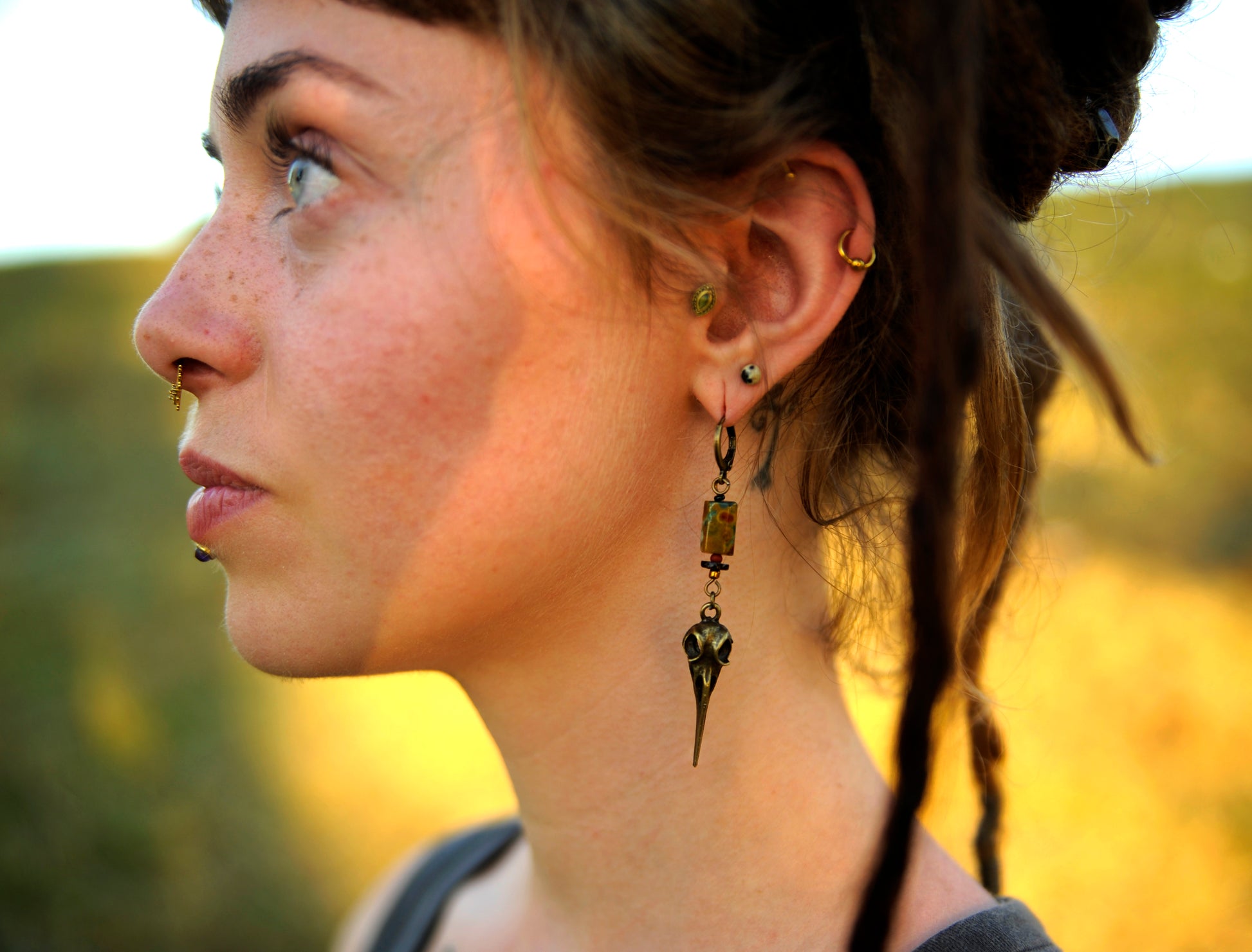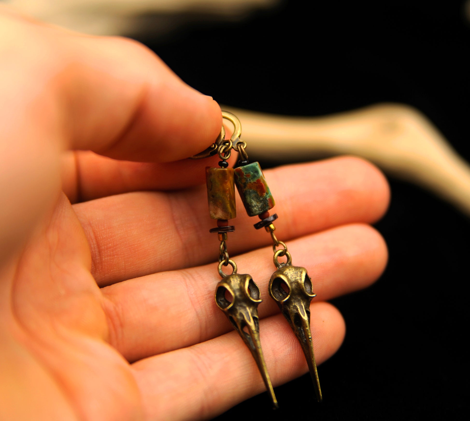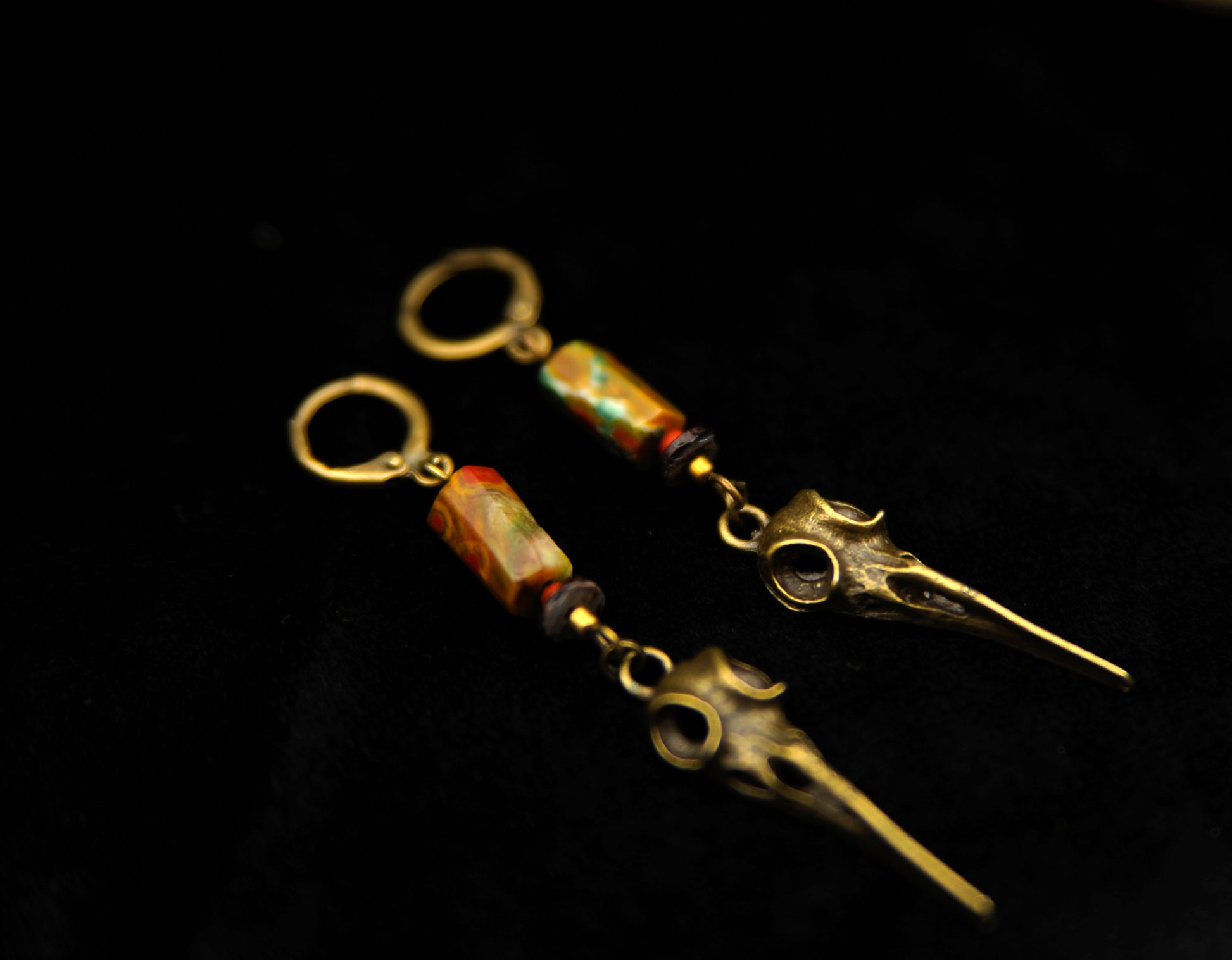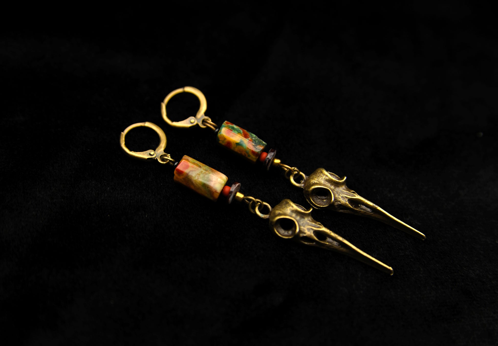 Raven Tide – Ohrringe mit Rabenkopf & Ocean Jaspis