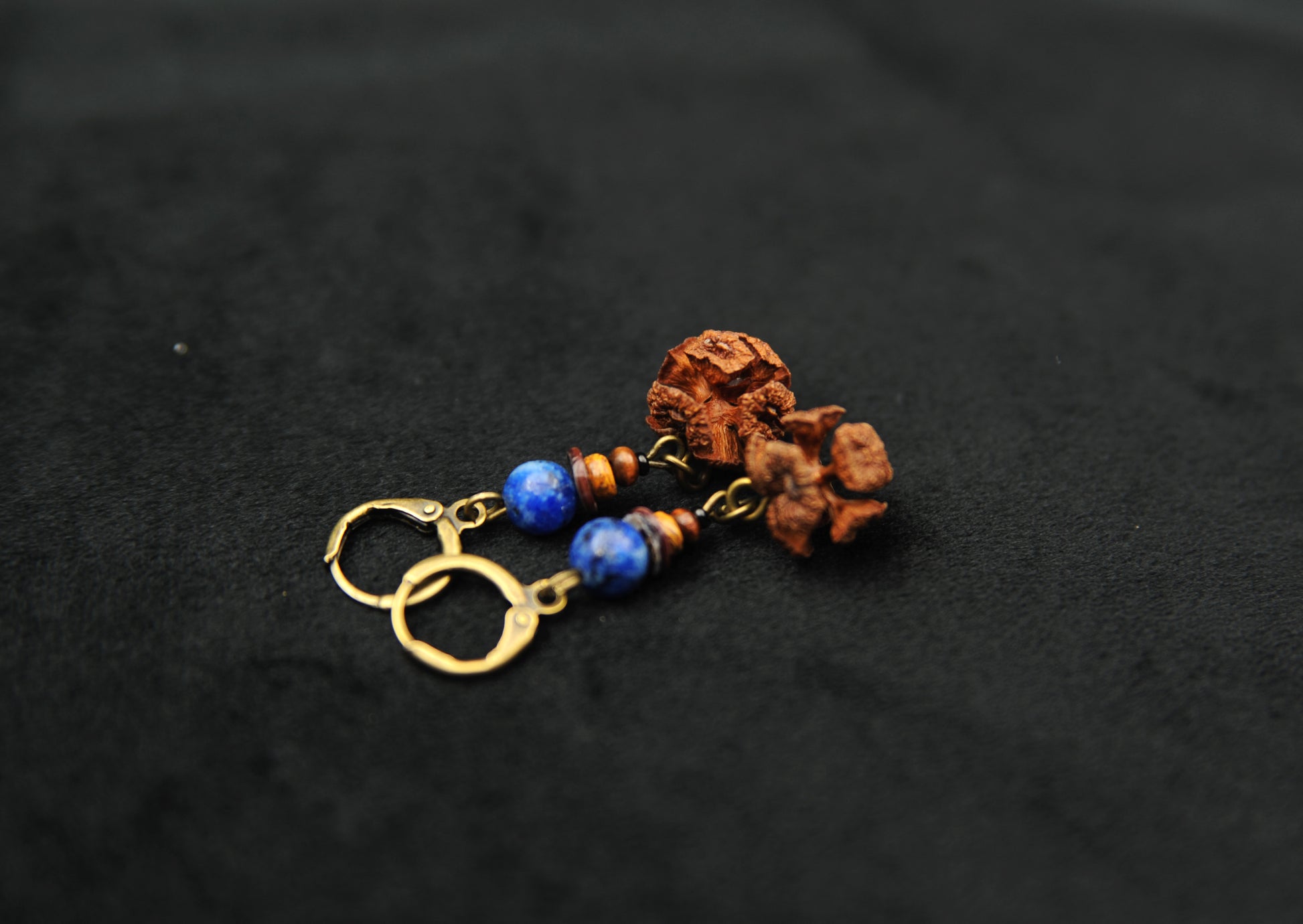 Zypressenzapfen Ohrringe mit Türkis – Boho Natur Schmuck